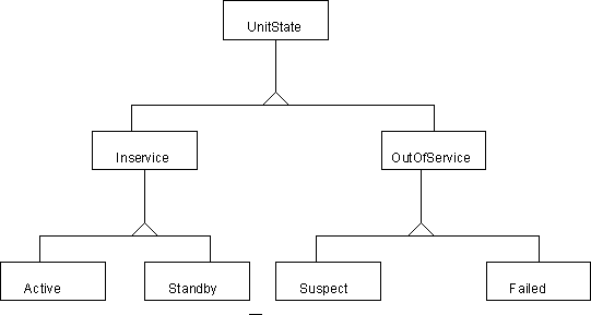 The following diagram clearly illustrates the state hierarchy. Even the Inservice and Out_Of_Service, high level states inherit from the Unit_State that is at the highest level.
